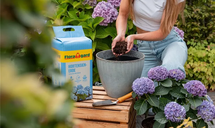 Floragard Hortensienerde – Spezialerde für intensiv blaue Hortensien und kräftige Blüten!